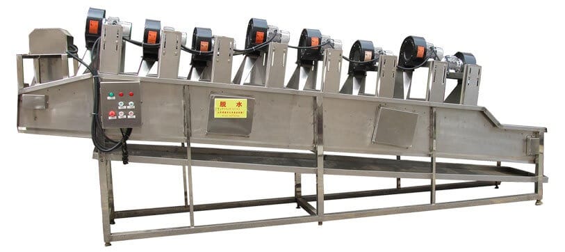 After washing, onions need to be dried for the next frying process. Air dehydration machine is the ideal equipment, made of stainless steel with an attractive appearance and small volume. Onion dehydration can be achieved by the high pressure and low-temperature airflow, with oil stain and incrustation removing. Saving energy, low cost, stable performance, high efficiency and hygienic dehydration.