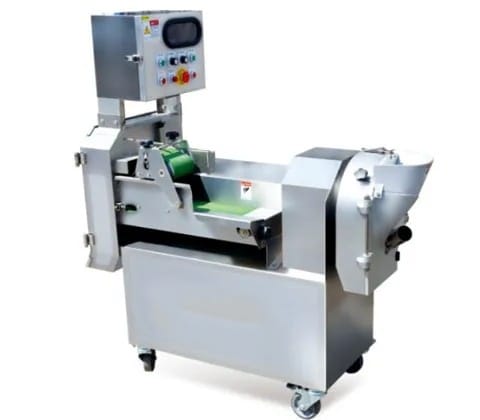 Multiple cutting tool sets work simultaneously to dice ingredients in three dimensions, producing uniformly sized pieces with high consistency and efficiency.