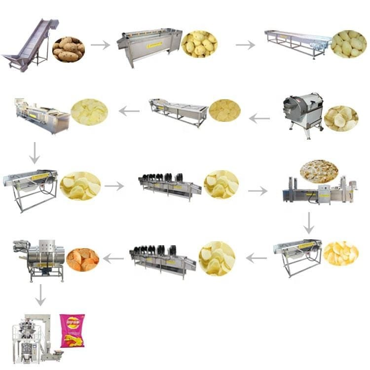 This industrial potato chips production line is designed for the efficient production of high-quality potato chips and crisps.