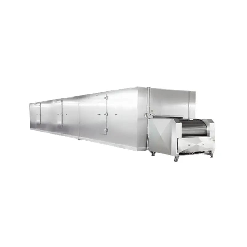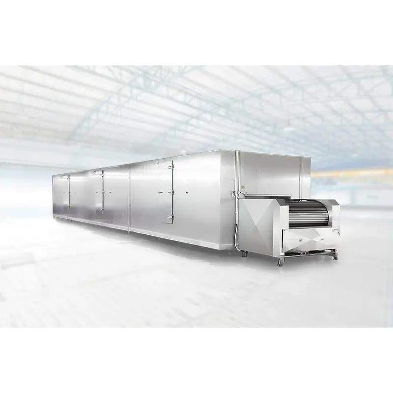 The fluidized tunnel freezer is ideal for freezing and chilling vegetables, fruits, and seafood. Mechanical vibration and airflow keep the products fluidized on the belt, preventing them from sticking together and enabling individual quick freezing.