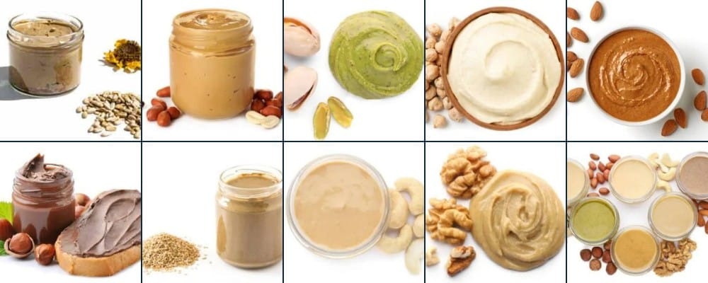 • Nut Butters: Peanut, Cashew, Almond, Hazelnut, and Macadamia.